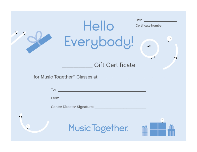 In addition to your weekly classes, tuition includes materials for you to use at home, access to the online Family Music Zone® and Hello Everybody app, and a family newsletter full of resources and music-making ideas!